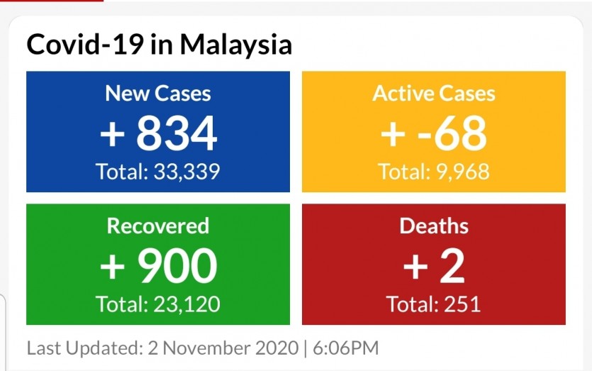 11월2일 확진자 834명
